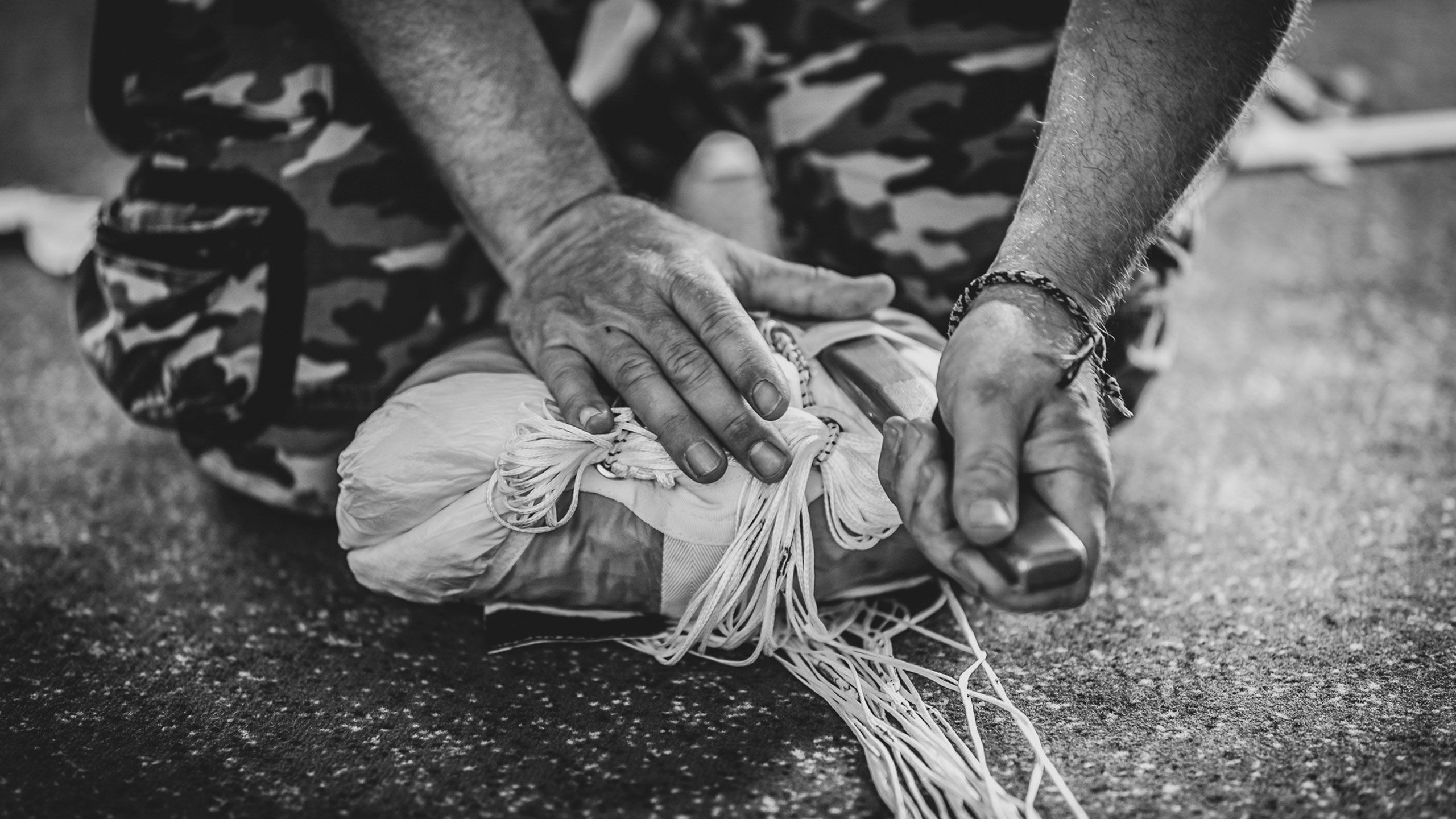 Fallschirm und Gurtzeug